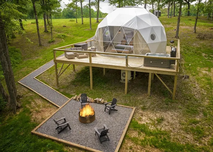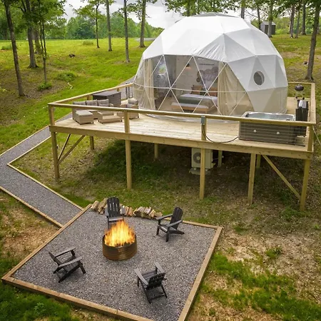 Luxury Glamping Dome W Hot Tub & Views Villa Simpson ligt op ongeveer 4 km van Jackson Falls en beschikt over een bubbelbad. Het vakantiehuis biedt mogelijkheden om duiken, wandelen en paardrijden in de omgeving, op circa 10 minuten rijden van de Millstone Bluff National Register Site.
